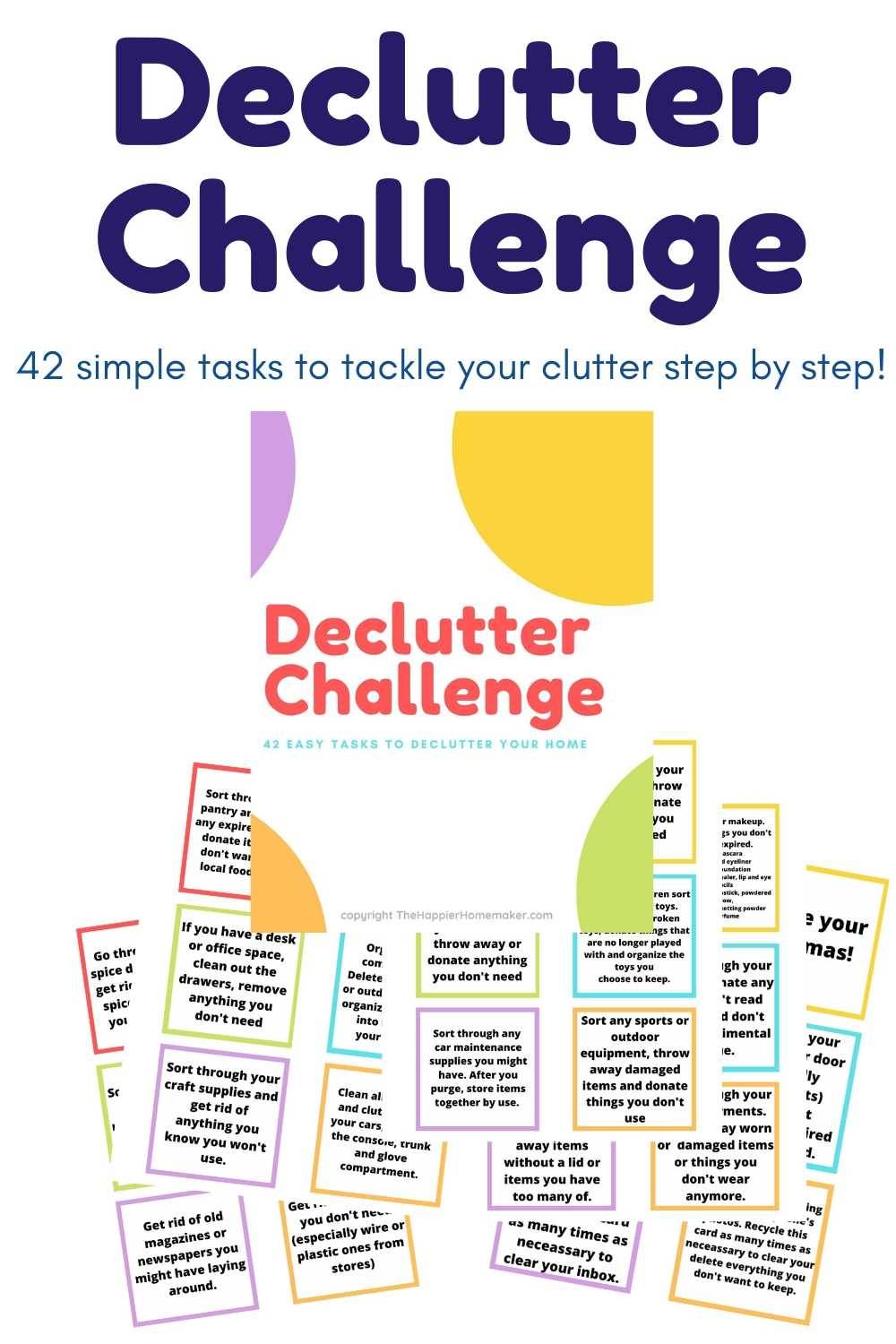 The Declutter Challenge takes the overwhelming task of decluttering your home and breaks it down into 42 simple task cards. Choose a card whenever you have time and watch your home transform literally before your eyes!